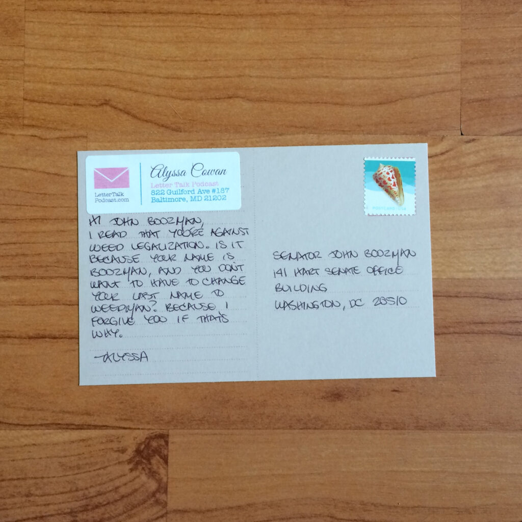 Hi John Boozman. I read that you’re against weed legalization. Is it because your name is Boozman, and you don’t want to have to change your last name to Weedman? Because I forgive you if that’s why.